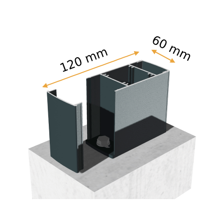 - Supporti di fissazione: Profilo murale + 2 piastre di fissazione al suolo – L 120 x P 60 mm