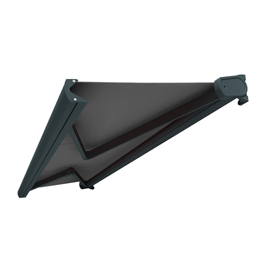 Il cassonetto integrale protegge completamente telo e meccanismi quando la tenda è chiusa, rendendola particolarmente indicata per installazioni su balconi e facciate. La tenda offre inoltre massima versatilità di montaggio, potendo essere fissata sia a parete che a soffitto, senza l’utilizzo di piastre intermedie, per un’installazione semplice, rapida e pulita.