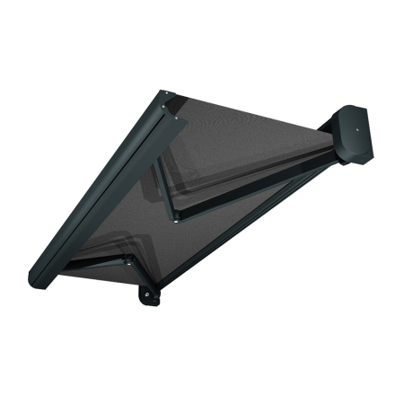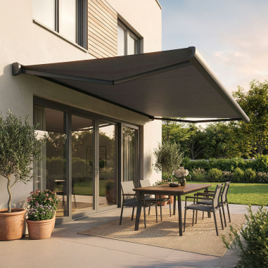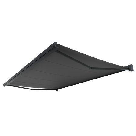 Questa tenda di ultima generazione ha tutto: un cassonetto integrale per una perfetta protezione del tessuto e del braccia, una resistente struttura in alluminio estruso e una bella finitura laccata.