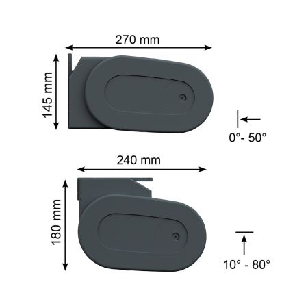 - Ingombro del cassonetto: Montaggio a parete: A 145 x P 270 mm | Montaggio a soffitto: A 180 x P 240 mm